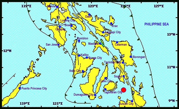 Location: 09.61°N, 124.94°E – 037 km S 23° W of Limasawa (Southern Leyte)
