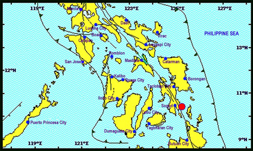 Location: 10.40°N, 125.24°E – 005 km N 83° E of Hinunangan (Southern Leyte)