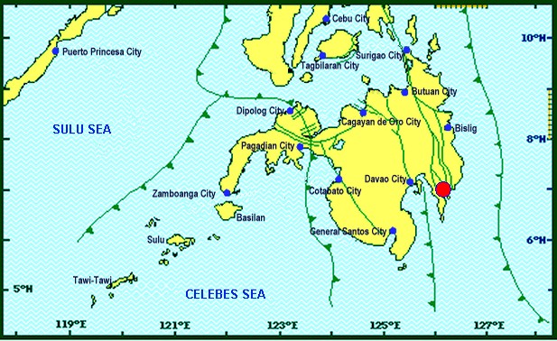Location: 07.00°N, 126.18°E – 007 km N 40° W of Mati (Davao Oriental)