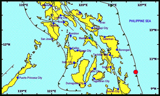 Location: 10.10°N, 126.66°E – 064 km N 82° E of Burgos (Surigao Del Norte)