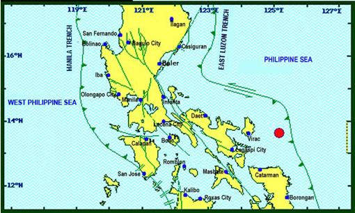 Location: 13.61°N, 125.16°E – 085 km S 78° E of Gigmoto (Catanduanes)