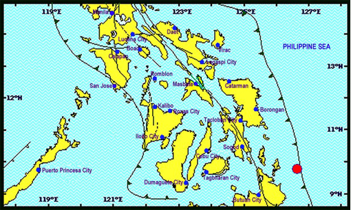 Location: 09.74°N, 126.65°E – 054 km S 85° E of General Luna (Surigao Del Norte)