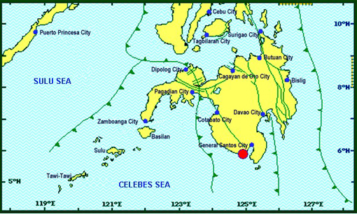 Location: 05.86°N, 124.91°E – 011 km N 89° W of Maasim (Sarangani)