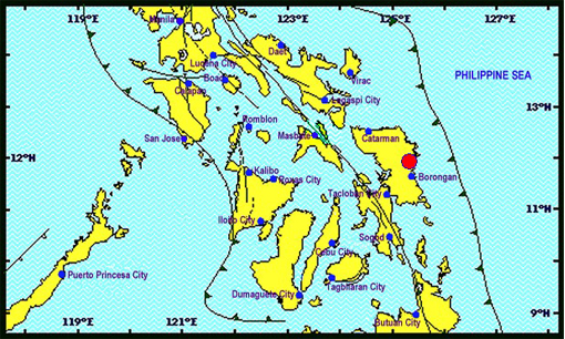 Location: 11.91°N, 125.33°E – 022 km N 37° W of San Julian (Eastern Samar)