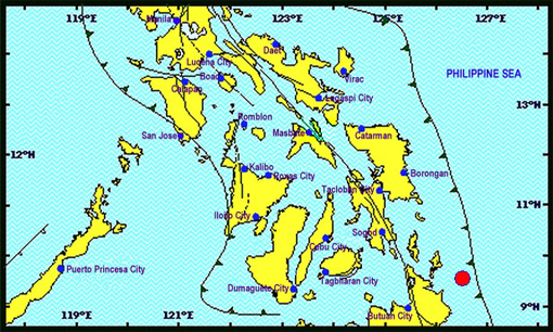 Location: 09.52°N, 126.52°E – 050 km S 54° E of General Luna (Surigao Del Norte)